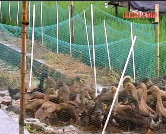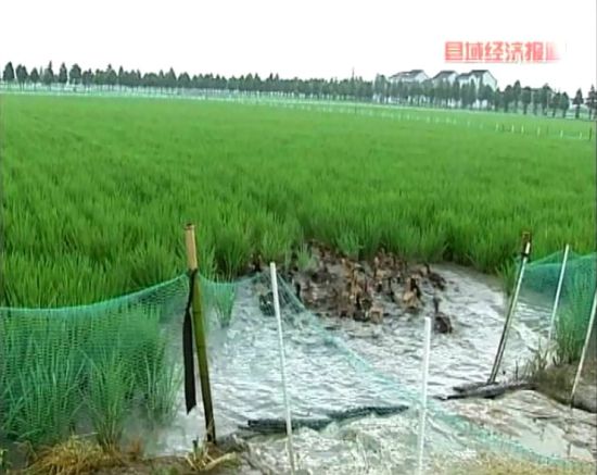 原来,这是低碳农业的一种新尝试——稻鸭共育。在水稻秧苗栽插成活后,将雏鸭全天放入稻田,利用雏鸭的杂食特性,消灭稻田内的杂草和害虫;同时,因为鸭子在稻田里不间断活动,刺激水稻分蘖生长,达到了中耕、浑水、增氧的效果;与普通水稻相比,稻鸭共育种植出来的稻米,不但口感好,而且亩产值也能大幅度提高。“