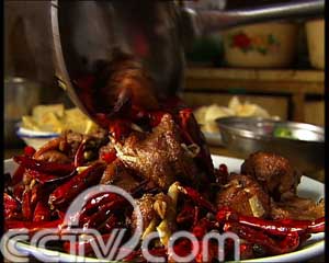 36号农家乐老板井大荣,个儿不高可透着一股精明劲,他用兔子制作的特色菜,一兔两吃,已经成了这里的招牌菜。