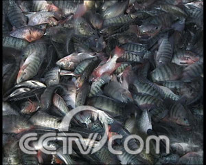 师彩霞:“罗非鱼是黑颜色的身上有条纹,一条一条有这个条纹,有条纹的这种是罗非鱼,能看见绿颜色颜色比较好看。”