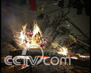 钓到了鱼的年轻人很高兴,晚上他们又在养鱼场搞了一个篝火晚会,一边唱歌一边烤鱼吃。