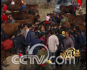 陕西省蓝田县南湾岭村村民张道方今天要卖牛,他请了一位行家帮他估价。