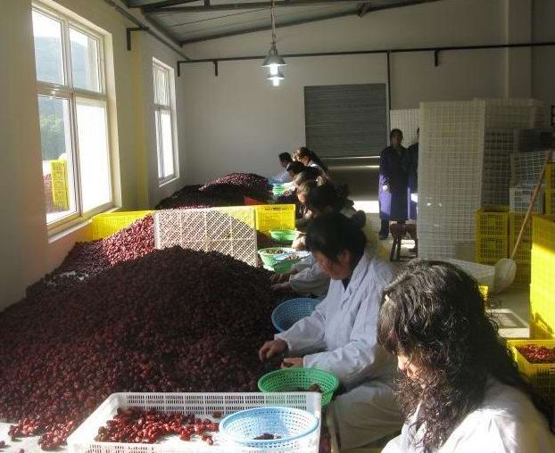 惠作华介绍说,为了解决红枣丰收不丰产的问题,今年清涧县开始在红枣主产区大力推广烤炉建设,截至今年上半年,已建设红枣烤炉1500多间,加工能力达35万吨,烘干后的鲜枣,经过进一步挑选加工,制成了特级产品蜜饯、滩枣、紫晶枣等,提高了红枣的产业价值,延伸了红枣产业发展链条。“随着清涧红枣加工能力的提升,本县的枣原料已经不够当地烤炉加工,部分拥有多个烤炉的枣农及加工企业,开始向周边县收购红枣,可以说目前清涧已经成为陕北红枣的集散地。”
