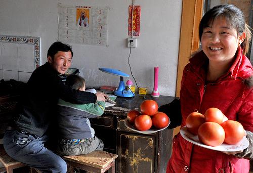 12月22日,反季节番茄是张粉叶(右)家常年都有的蔬菜。