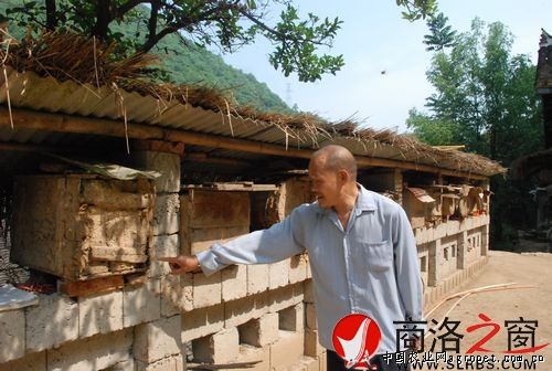 6月20日,顶着夏日的骄阳,沿着弯曲而平滑的水泥路,我们来到了商南县白玉沟村养蜂大户刘传富家,四间修葺一新的瓦房掩映在山坳间的绿树丛中,房前屋后一笼笼蜜蜂叠叠重重,异常繁忙。