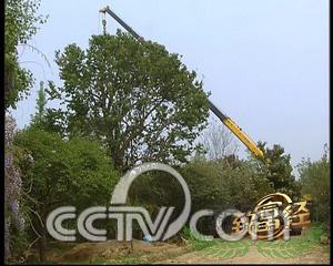 3个多小时过后,吊树、装车是最让的田淑华揪心的,这么大的一棵树,万一伤碰伤树皮、树根,这笔买卖可就做不成了。