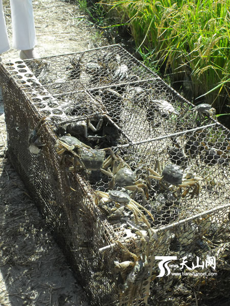 天山网讯(记者尹树娥摄影报道)“我从9月3号开始卖螃蟹,现在每天能卖二、三十公斤,一公斤100块。都是一些大酒店或者市民通过电话预订的,我计划在中秋节前把70%的螃蟹都卖掉,因为9月20号我就要开始收稻子了。”9月6日,记者来到了乌鲁木齐市米东区三道坝镇种殖户陈文英的田间地头,她高兴地对记者说。