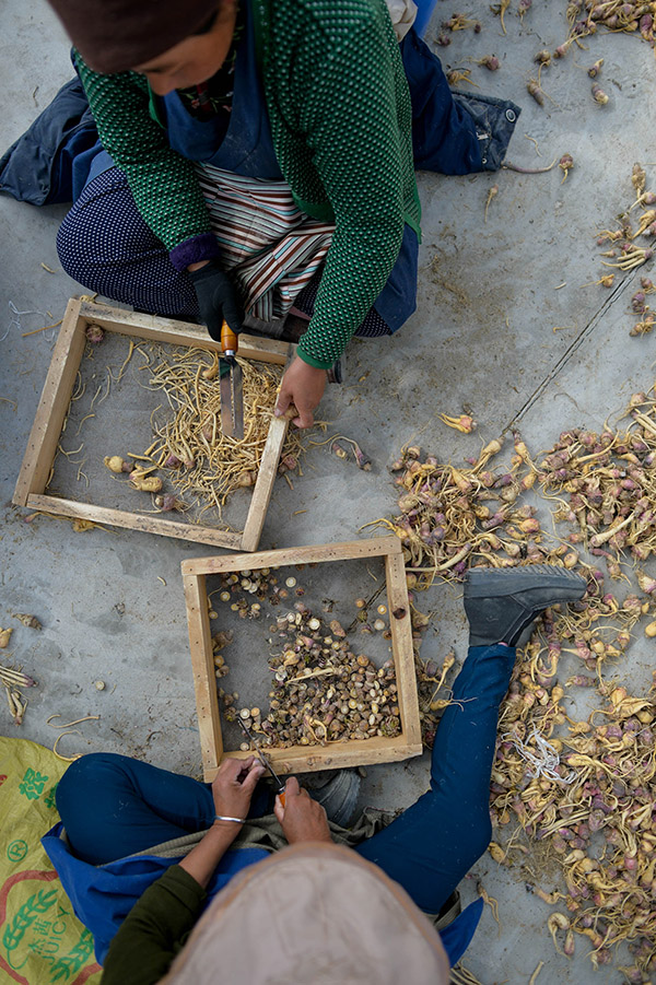 11月17日,在曲水县玛卡加工厂,工作人员对玛卡进行粗加工。