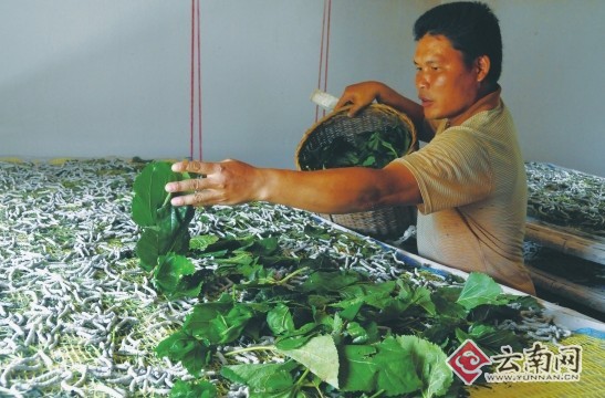 墨江哈尼族自治县夏无酷暑,冬无严寒,是栽桑养蚕的好地方。“十一五”以来,该县按照“把优势产业做到最大化”的产业发展思路,通过项目扶持,积极引导农民栽桑养蚕。同时,该县引进普洱市佳浩茧丝绸集团公司,在墨江注册成立了墨江县双源茧丝绸有限公司。在龙头企业的带动下,全县初步形成了育苗、栽桑、蚕茧收烘、缫丝一体化经营的产业化发展格局。加上积极实施订单农业,公司与农民、技术人员分别签订栽桑建棚合同、技术服务合同及蚕茧购销合同,结成了利益共享、风险共担的共同体,使全县蚕桑业走出了一条“公司+基地+农户”的产业发展之路。