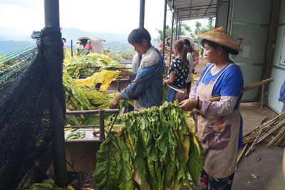 走 进勐堆乡铜厂村,道路两旁的烤房里只见种烟农户忙碌的身影。时下已进入烤烟烘烤的关键阶段,群众抓节令忙着完成最后的烘烤作业。采摘来的烟叶用农用拖拉机 运输到烤房后,大家忙着把烟叶扎把、入炉,然后进行烘烤。村民李德明家今年初次种植烤烟,从种植、管护到采摘严格按照技术要领进行,通过辛勤劳动,烤烟种 植给他家带来了可观的收入,今年他家共种植烤烟3亩,产量500多公斤,收入达1万多元。李德明说,种植烤烟虽然辛苦,但是比种玉米收入高多了。